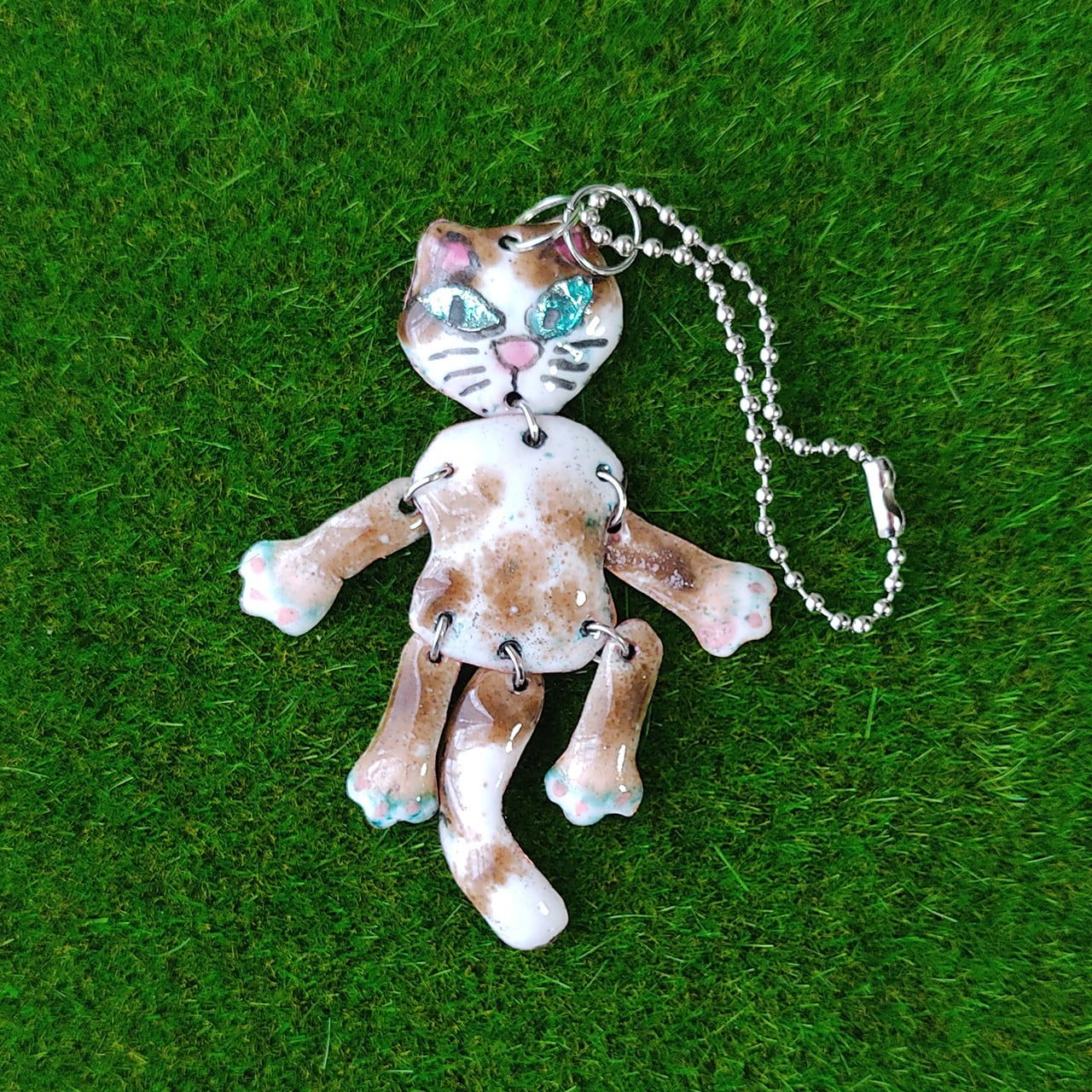 ハチワレ猫 茶色・ブルーアイ 七宝焼バッグチャーム