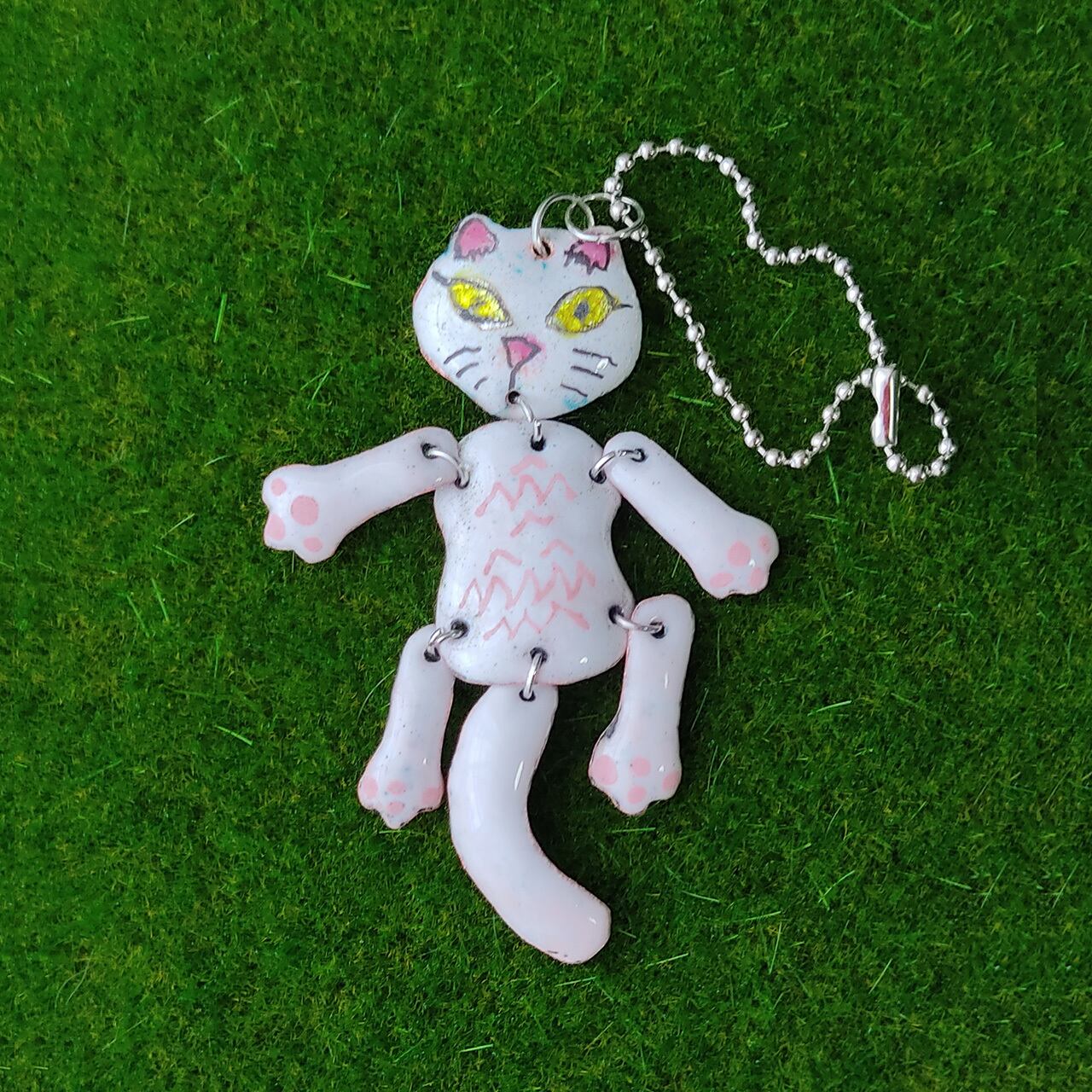 脱力系のシュールな顔立ちの猫ちゃんのバッグチャームを